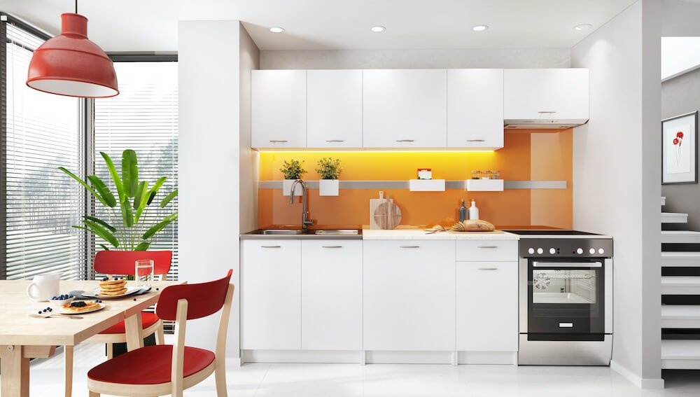 Die aufgeführten Preise enthalten NICHT die Arbeitsplatte, Dekorationen, Elektrogeräte, Einbauten (Spüle etc.) sowie Beleuchtungseinheiten